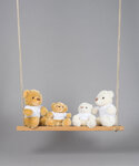A cute mid brown coloured bear dressed in a removable white cotton T-shirt.  Remove all hang tags and their fasteners before giving these items to a child.
